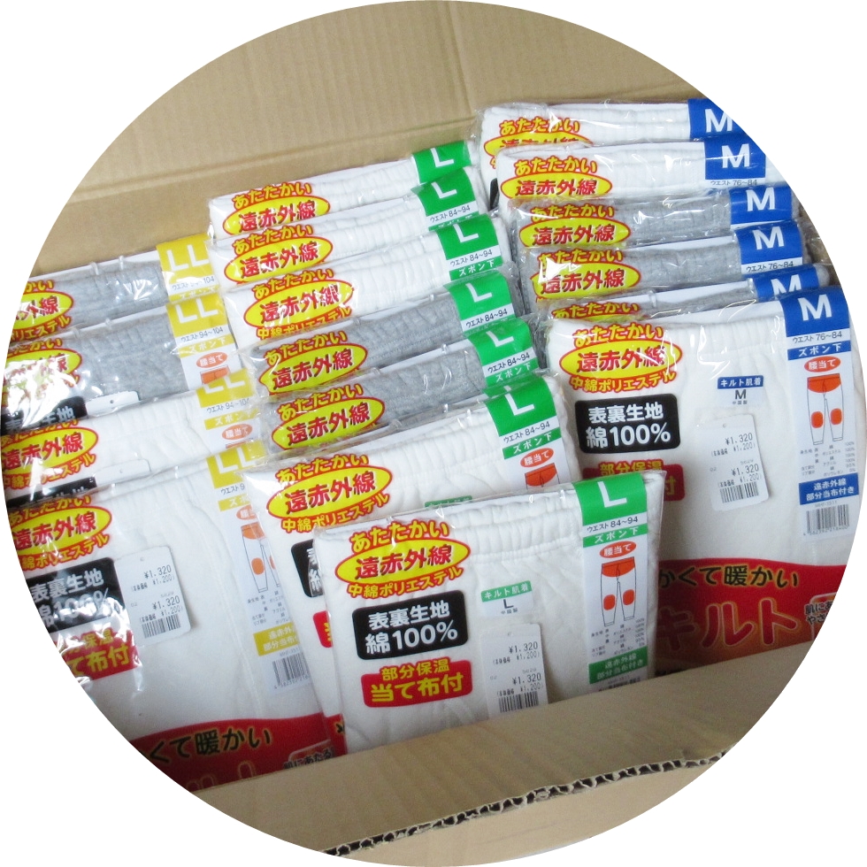 弊社では、主に県内の高齢者施設や福祉施設・老人ホームなどを訪問し、衣料品の出張販売をしております。 下着やパジャマなどの各種衣料から雑貨まで取り揃えております。 外へお買い物へ出かけることが難しい方からは勿論、人手不足などでどうしても患者様・ご入居者様をお買い物へお連れするのが難しい施設職員の皆様からもとてもご好評いただいています。 お外に出かけることは気持ち的にもリフレッシュできますが、ご体調の関係でそれも難しい方や、ご高齢の方ですと安全面の懸念もございます。 そういった方々に”安心安全にお買い物の機会”を提供することで、お買い物をしていただく喜びを味わいながら、リフレッシュして頂くお手伝いをさせていただいております。 ご希望のお客様は一度ご相談くださいませ。 ※冬物商品一例です。季節やその他ご要望になるべくお応えしたものをお持ちします。 ![]() ![]() ![]() ![]() ![]() ![]() ![]() ![]() 【お問合せ先】 株式会社ロベル 〒984-0015 宮城県仙台市若林区卸町2丁目8-8 TEL:022-232-3924 FAX:022-232-6639 |